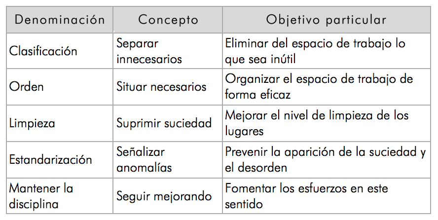 La aplicación de lean 5S satisface múltiples objetivos. Cada ‘S’ tiene un objetivo particular como: