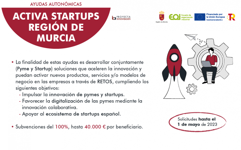 Fundaciones, asociaciones o empresas privadas, que cumplan la condición de PYME de la Región de Murcia que vayan a desarrollar un proyecto de innovación abierta con el asesoramiento y apoyo de una startup. Enmarcadas en los siguientes sectores: Manufacturero, Gestión de residuos (*Cumplimiento DNSH), Descontaminación, Saneamiento, Suministro de agua, Construcción, Transporte, Hostelería, Servicios de arquitectura, Ingeniería, I+D.