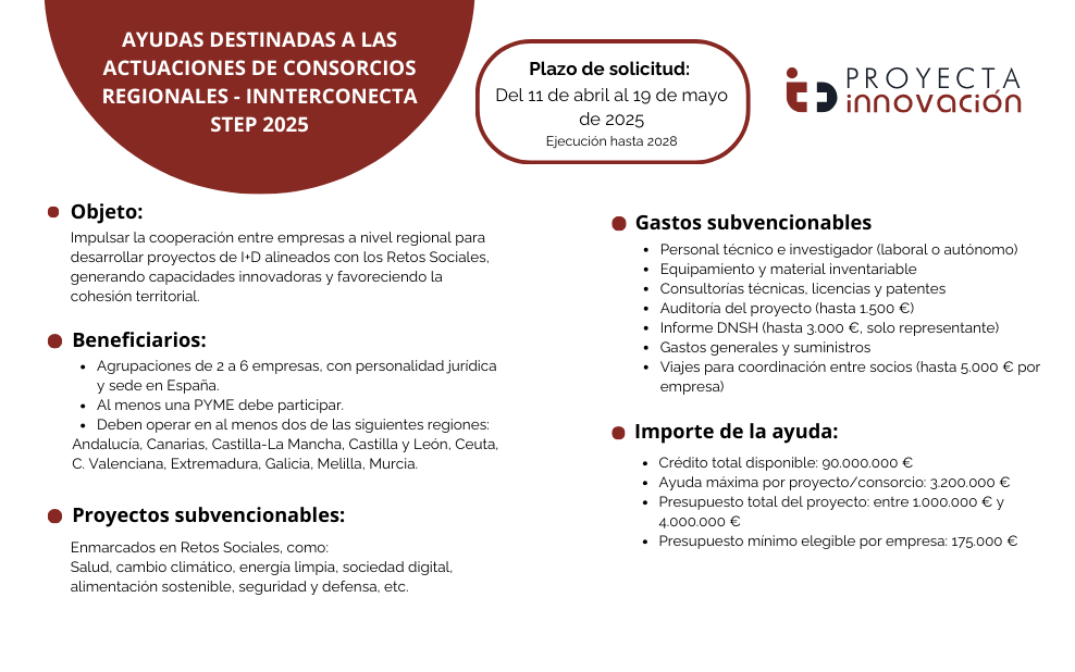 Ayudas destinadas a las actuaciones de consorcios regionales – Innterconecta Step 2025