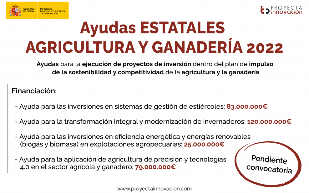 Beneficiarios: Personas físicas o jurídicas, de naturaleza privada o pública, que sean titulares de una explotación agrícola o ganadera: 260.000 euros.