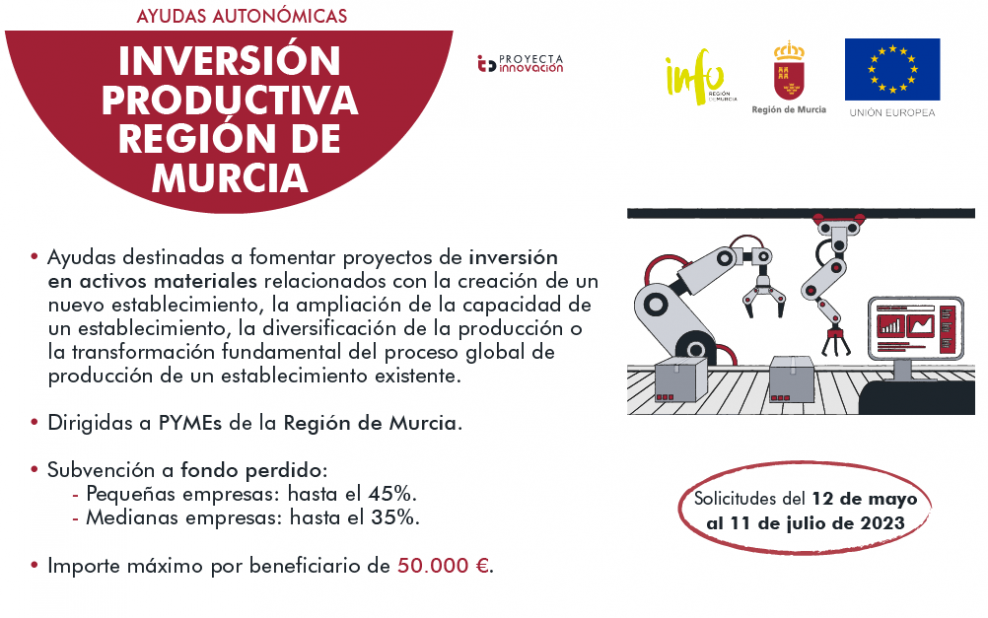 Pymes con forma societaria, de cualquier sector de actividad salvo las dedicadas a la pesca, acuicultura, producción primaria de los productos agrícolas enumerados en el Anexo I del Tratado, y a los sectores del acero, carbón, construcción naval, fibras sintéticas, transporte e infraestructuras conexas y de investigación, que realicen un inversión elegible en el territorio de la Comunidad Autónoma de la Región de Murcia.