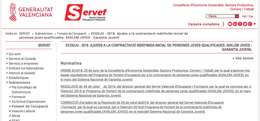 Esta convocatoria tiene por objeto la concesión de subvenciones para fomentar la contratación indefinida inicial a jornada completa de las personas jóvenes cualificadas, que figuren inscritas en el fichero del Sistema Nacional de Garantía Juvenil en el ámbito territorial de la Comunitat Valenciana.