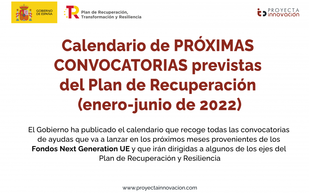 El Gobierno ha publicado el calendario que recoge todas las convocatorias de ayudas que va a lanzar en los próximos meses, provenientes de los Fondos Next Generation UE, y que irán dirigidas a algunos de los ejes del Plan de Recuperación y Resiliencia.