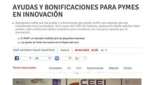 El Diario Económico Cinco Días ha entrevistado a nuestro director Víctor Gisbert con motivo de la jornada organizada por el Ceei Valencia en la que Proyecta Innovación presentará