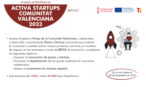 El Ministerio de Industria ha puesto en marcha el programa Activa Startups en la Comunidad Valenciana. Es un programa de ayudas, destinadas a favorecer la